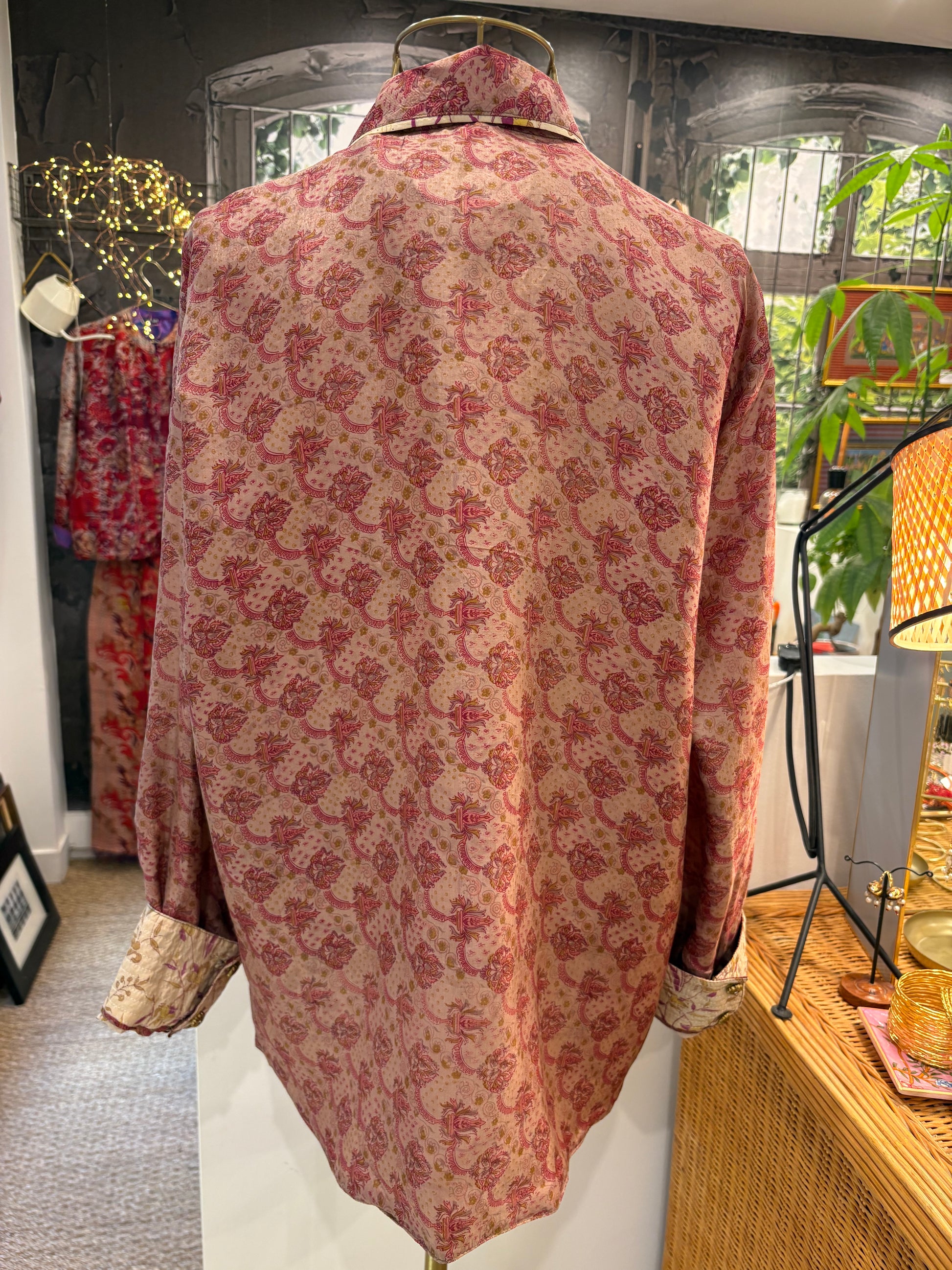 Chemise en saris de soie recyclée et réversible, avec des poches plaquées.