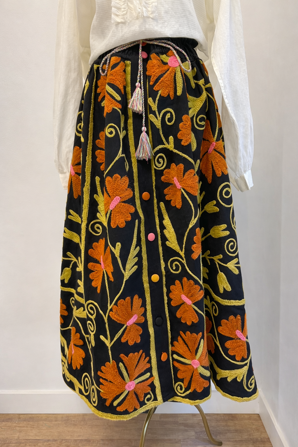 Ajoutez une touche d'originalité à votre garde-robe avec notre jupe brodée en Suzani.