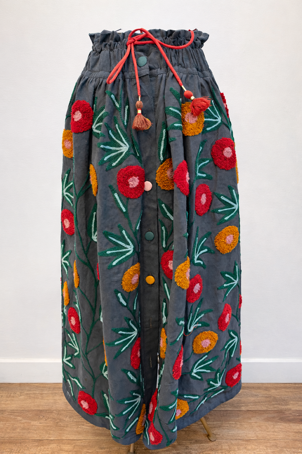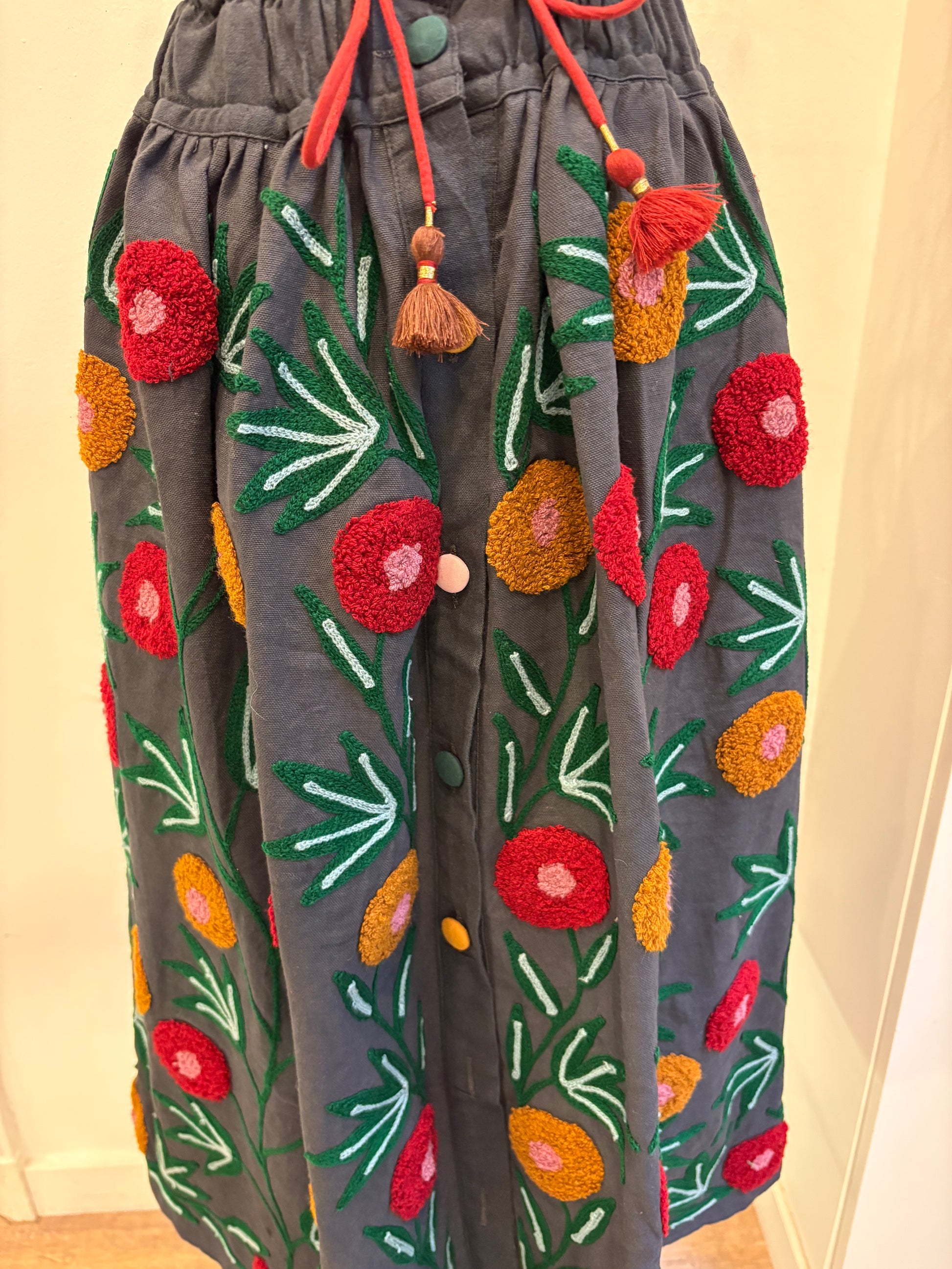Ajoutez une touche d'originalité à votre garde-robe avec notre jupe brodée en Suzani.