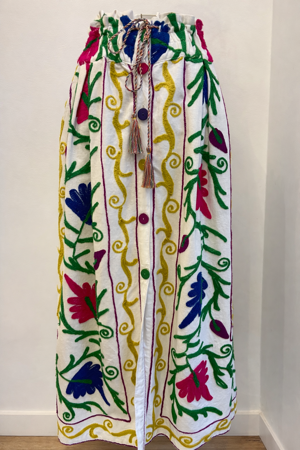 Ajoutez une touche d'originalité à votre garde-robe avec notre jupe brodée en Suzani.