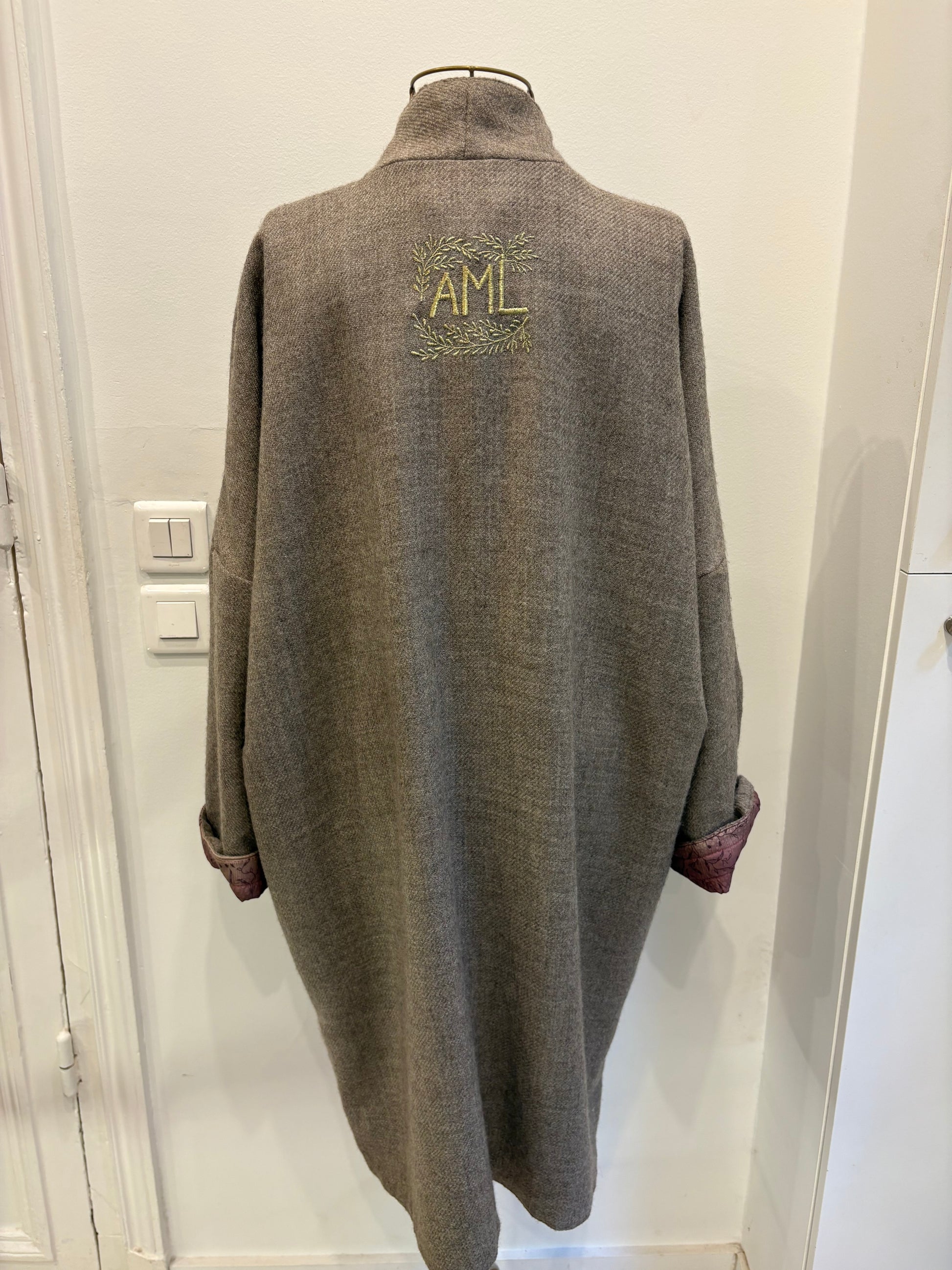 Manteau en laine doublée de soie, entièrement réversible et fabriqué à partir de saris recyclés.