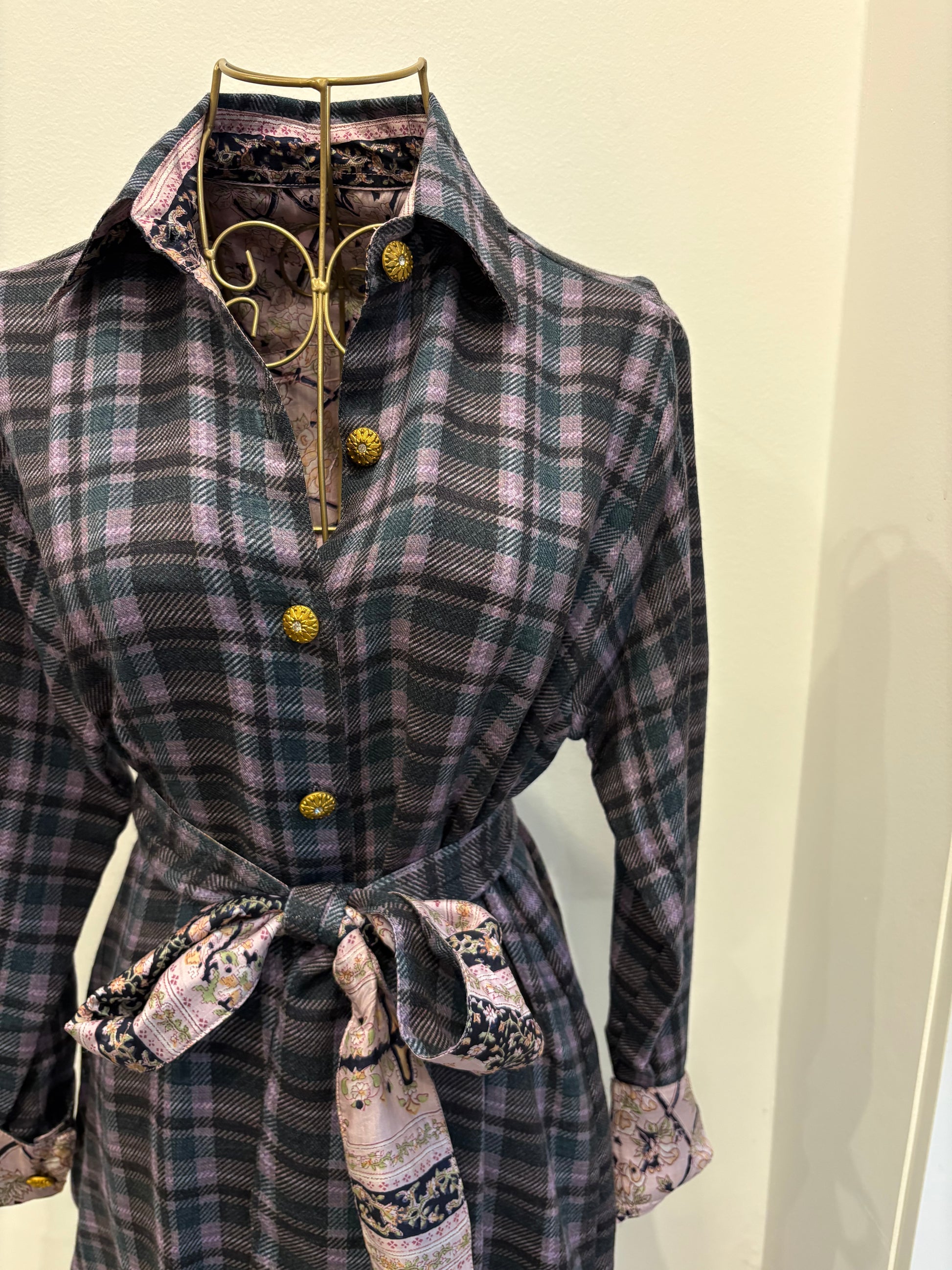 Robe chemisier réversible en laine et soie  – Pièce unique