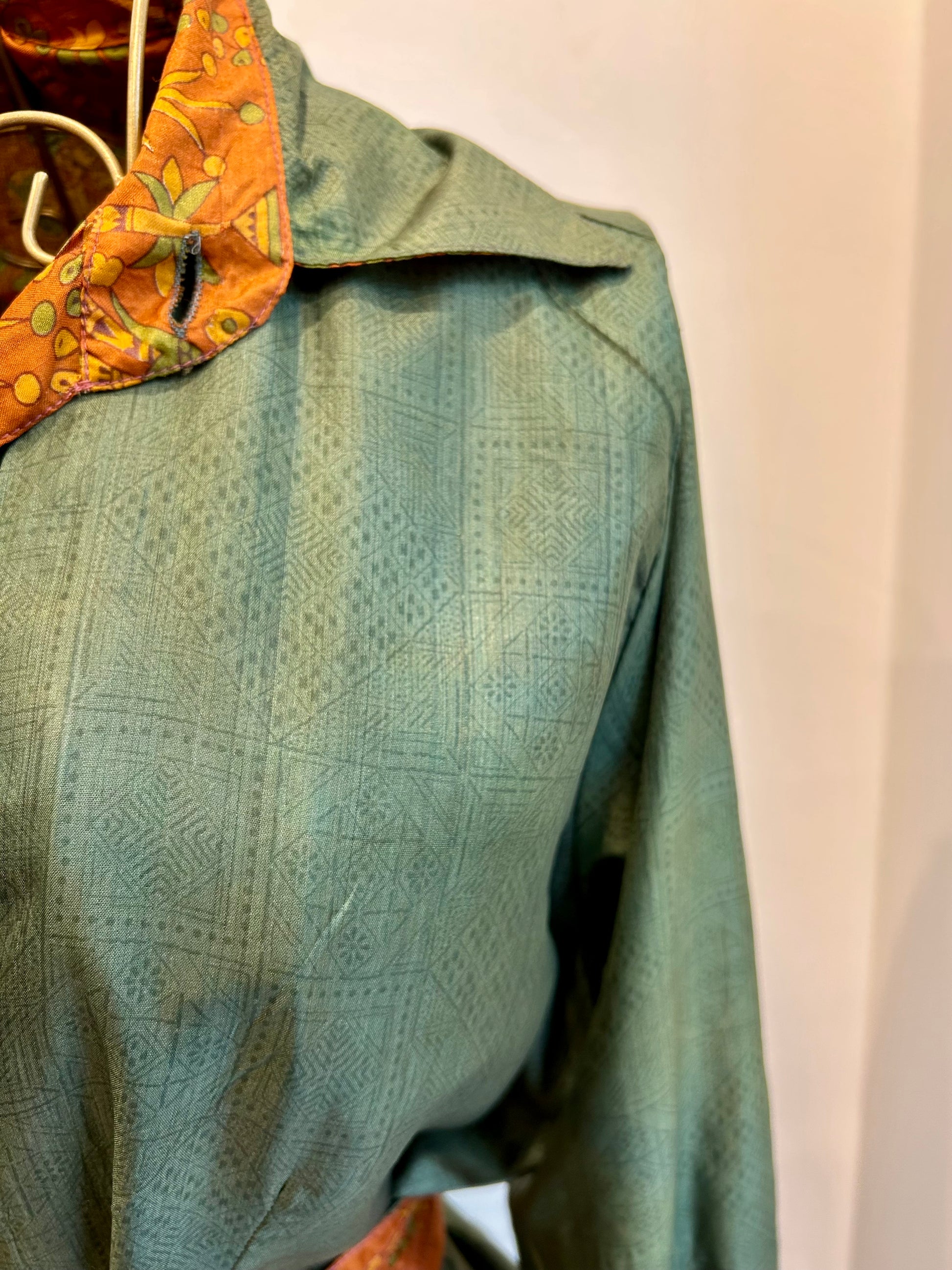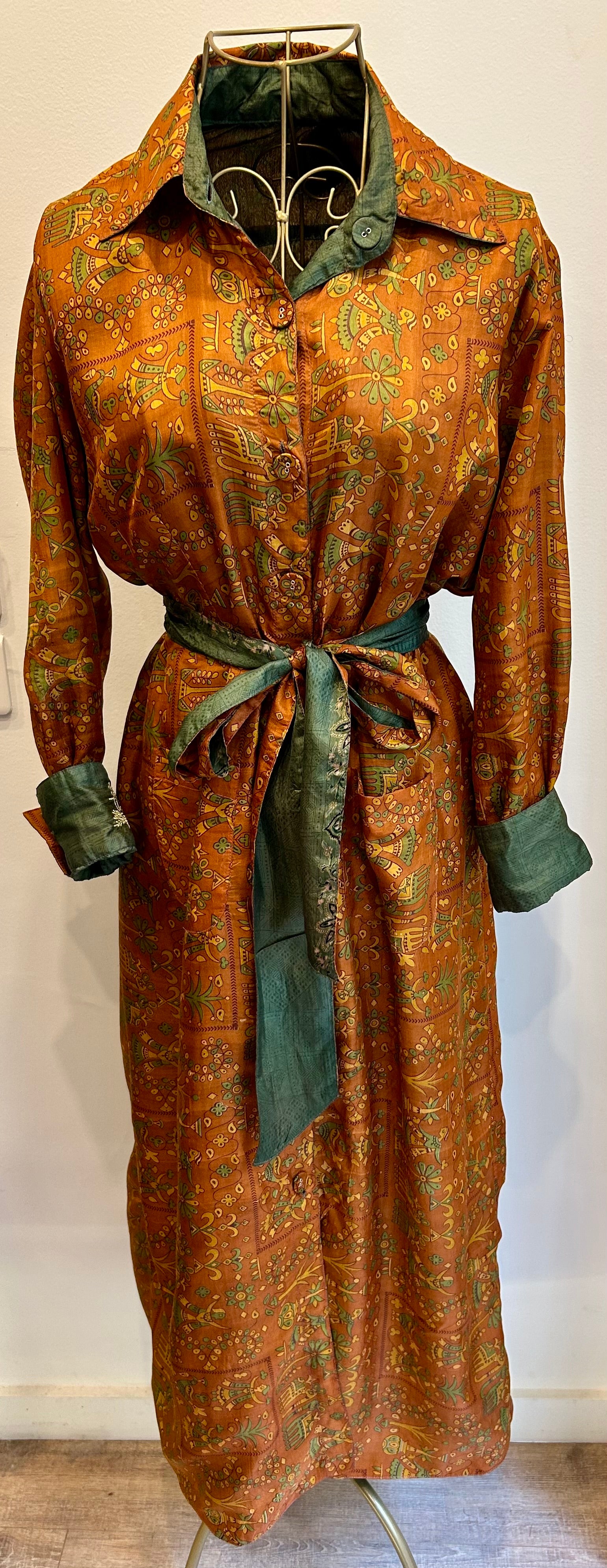 Chaque vêtement est confectionné à partir de saris recyclés, soigneusement sélectionnés par Anne-Marie. Chaque pièce est donc unique et porte en elle une histoire singulière.