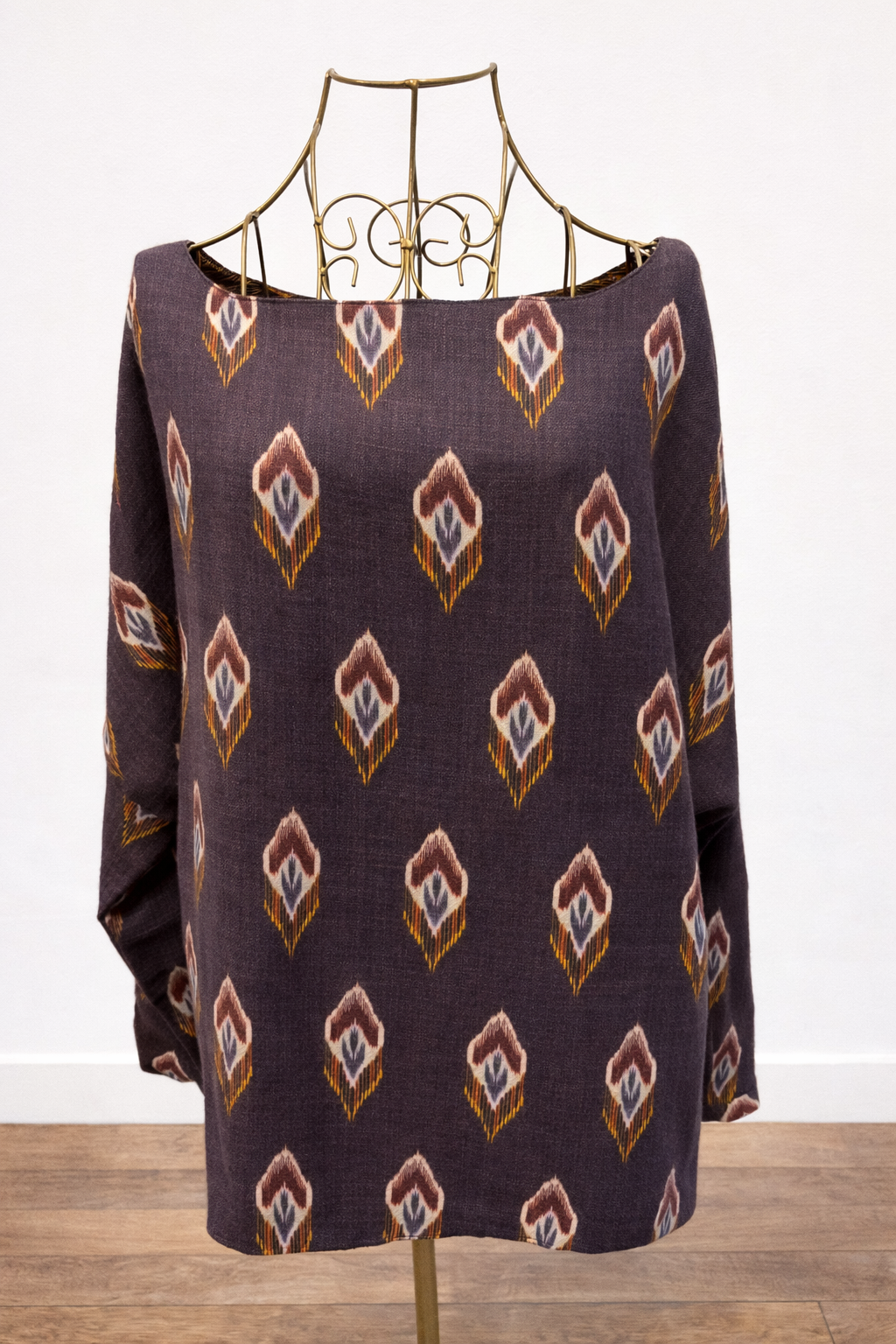 Top manches 3/4 en soie d’un côté et en laine de l’autre.