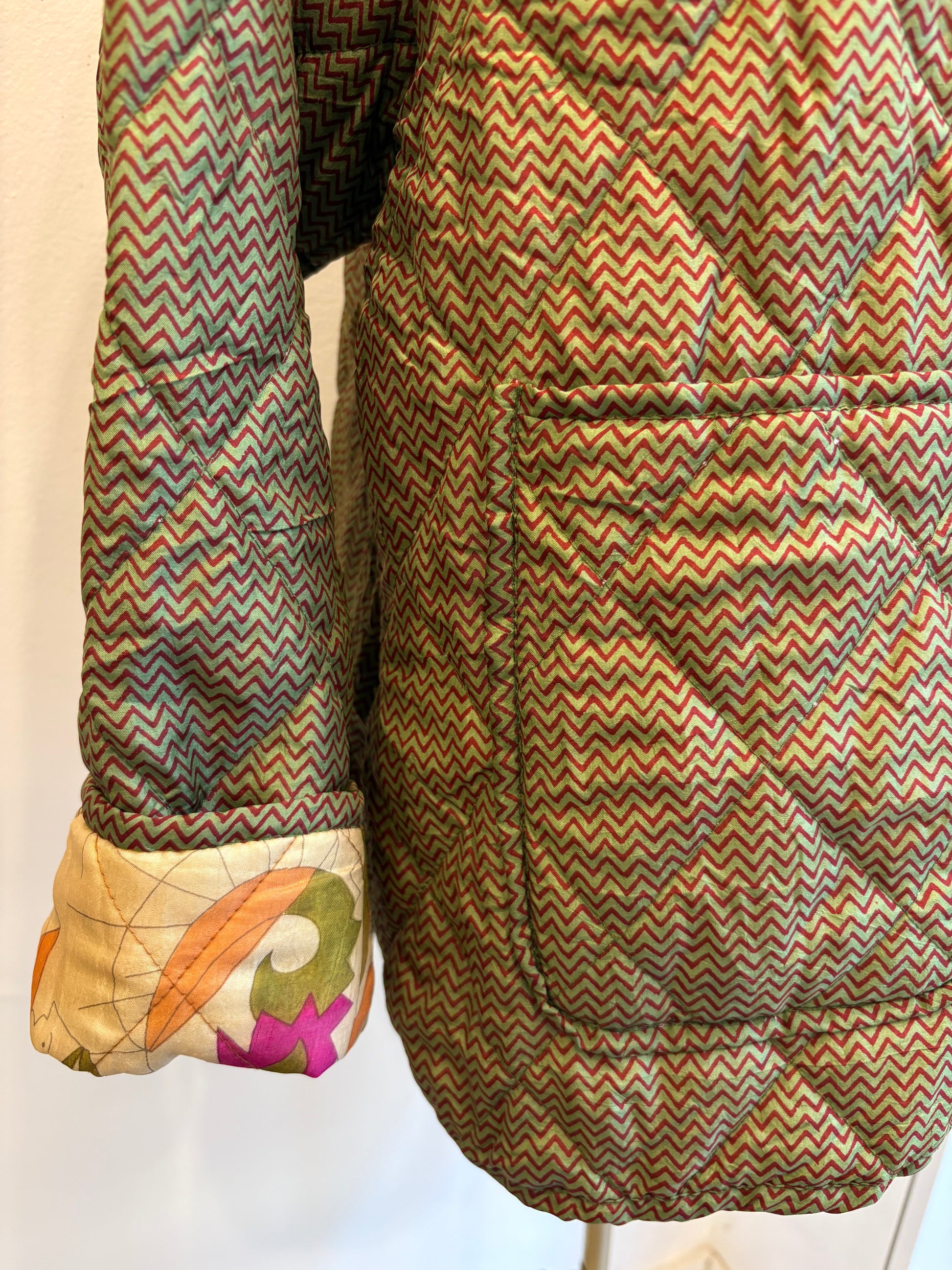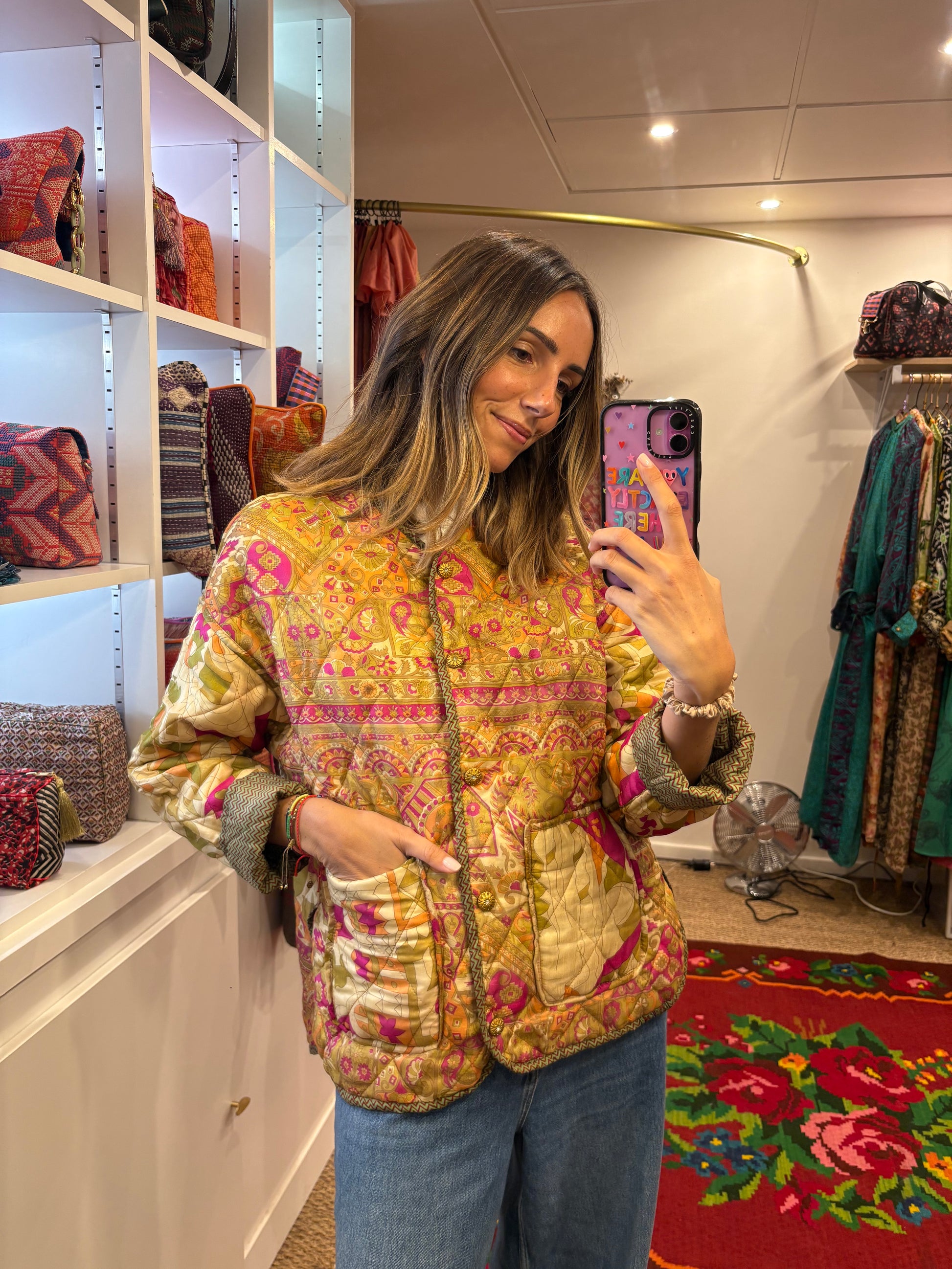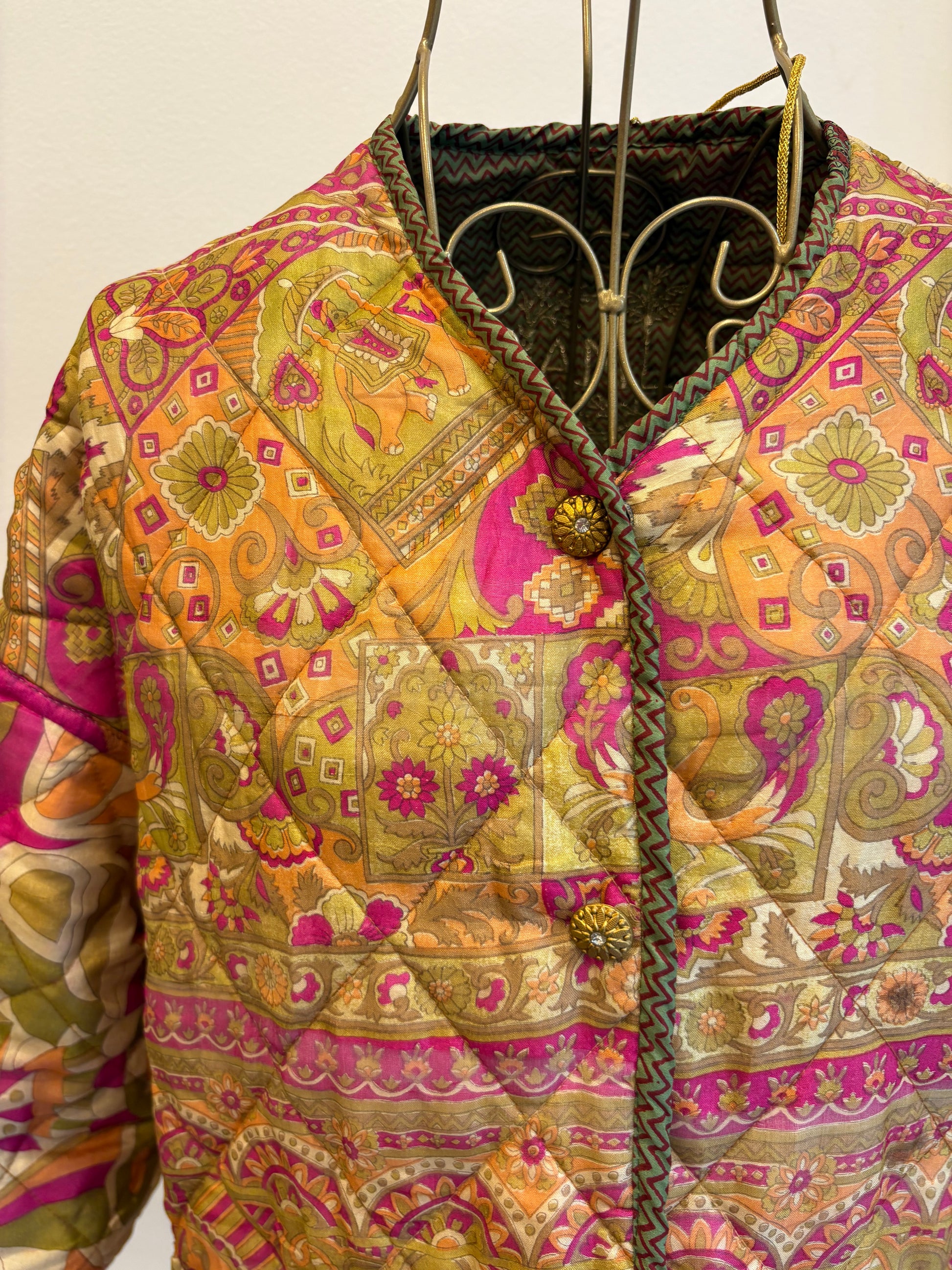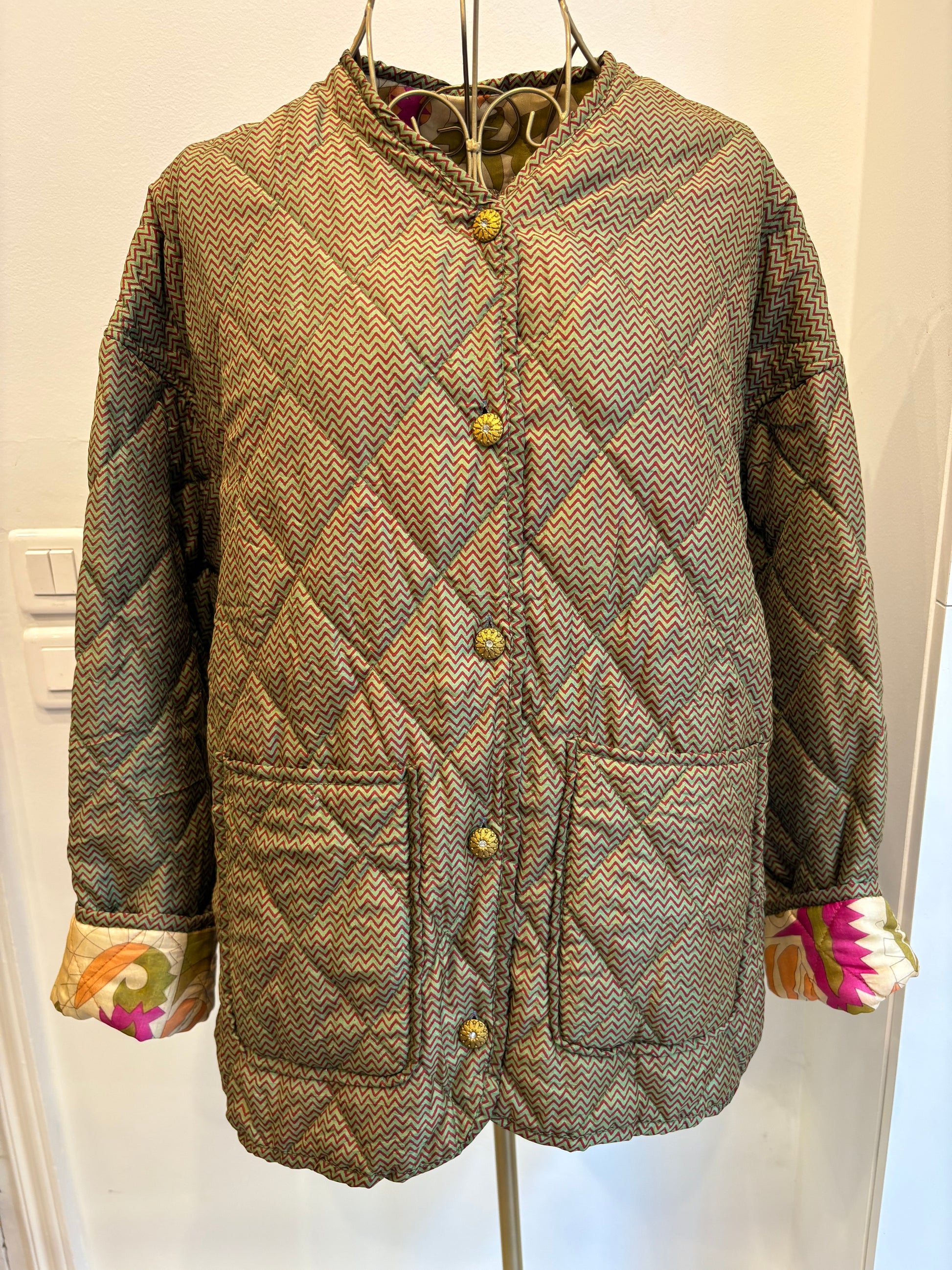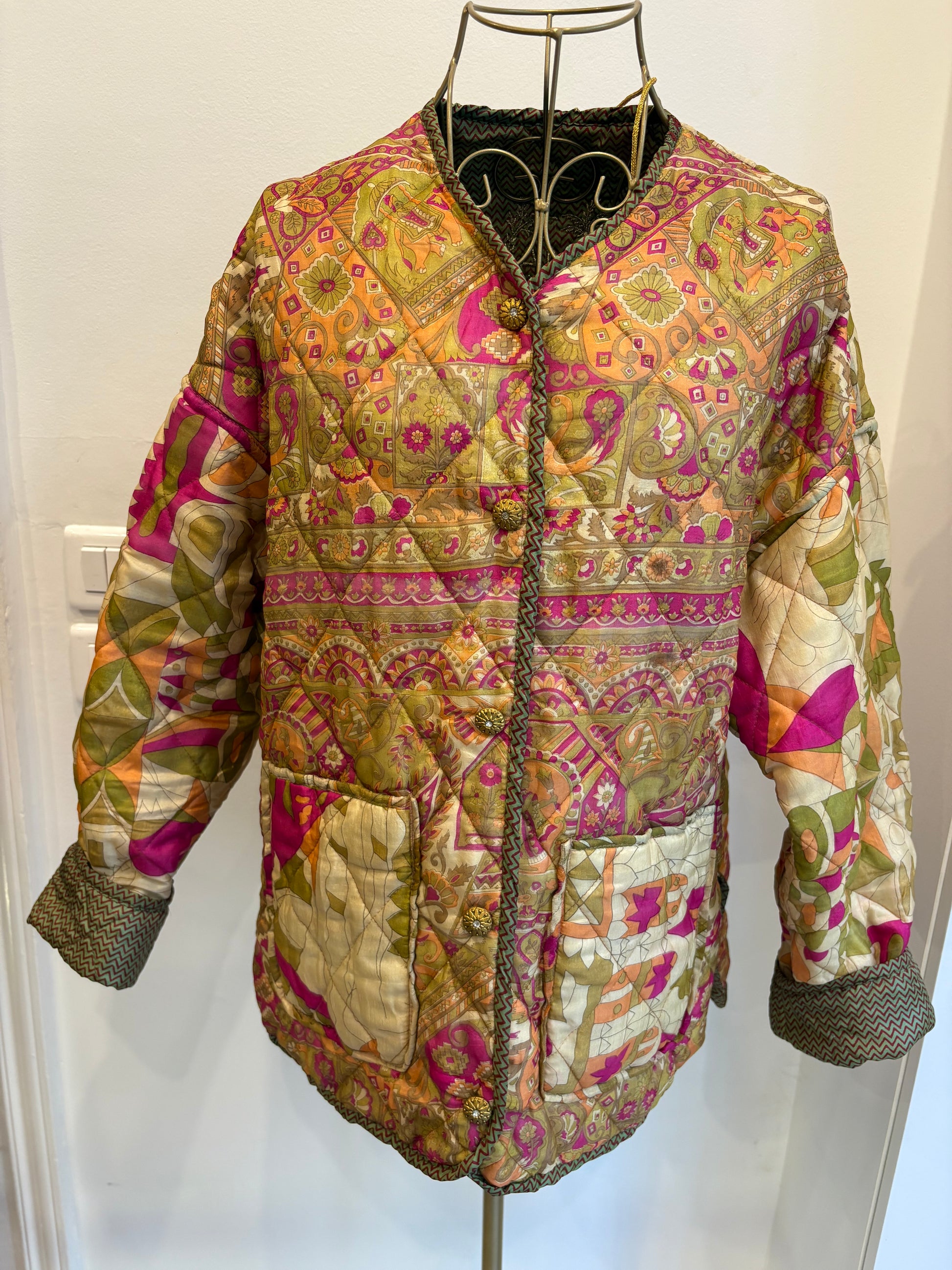 Découvrez notre élégante veste confectionnée en sari de soie recyclée, dotée de deux poches plaquées.