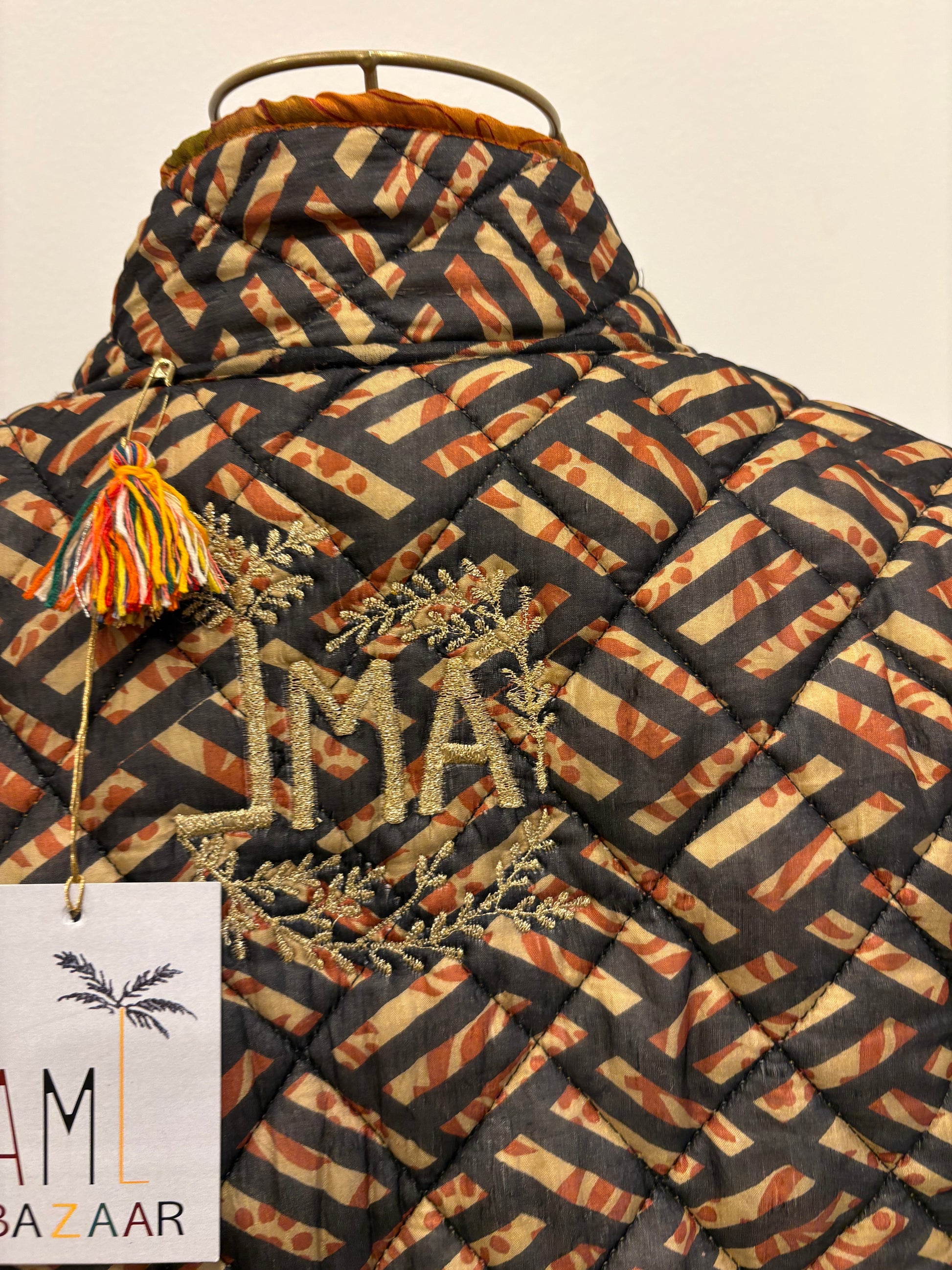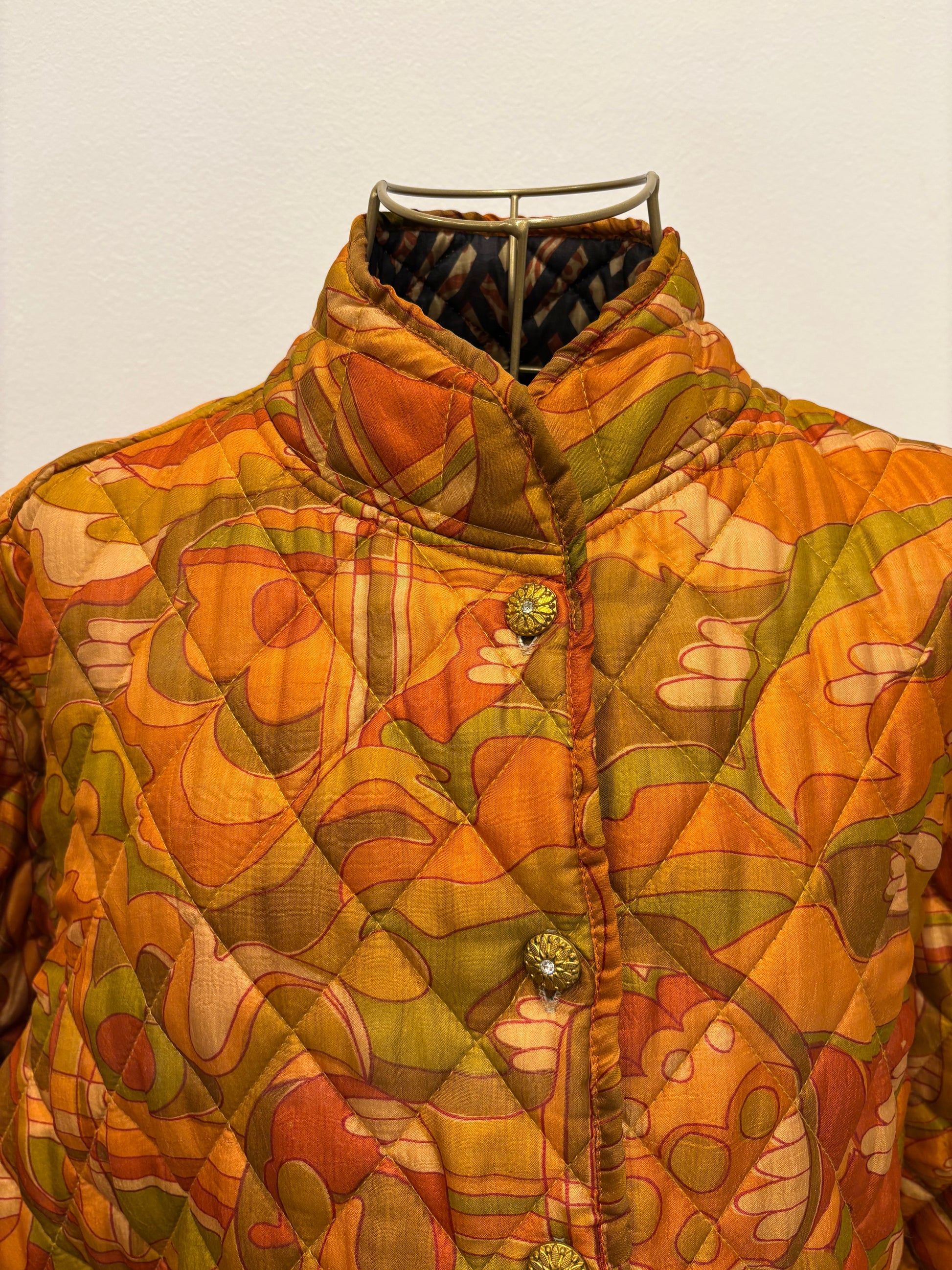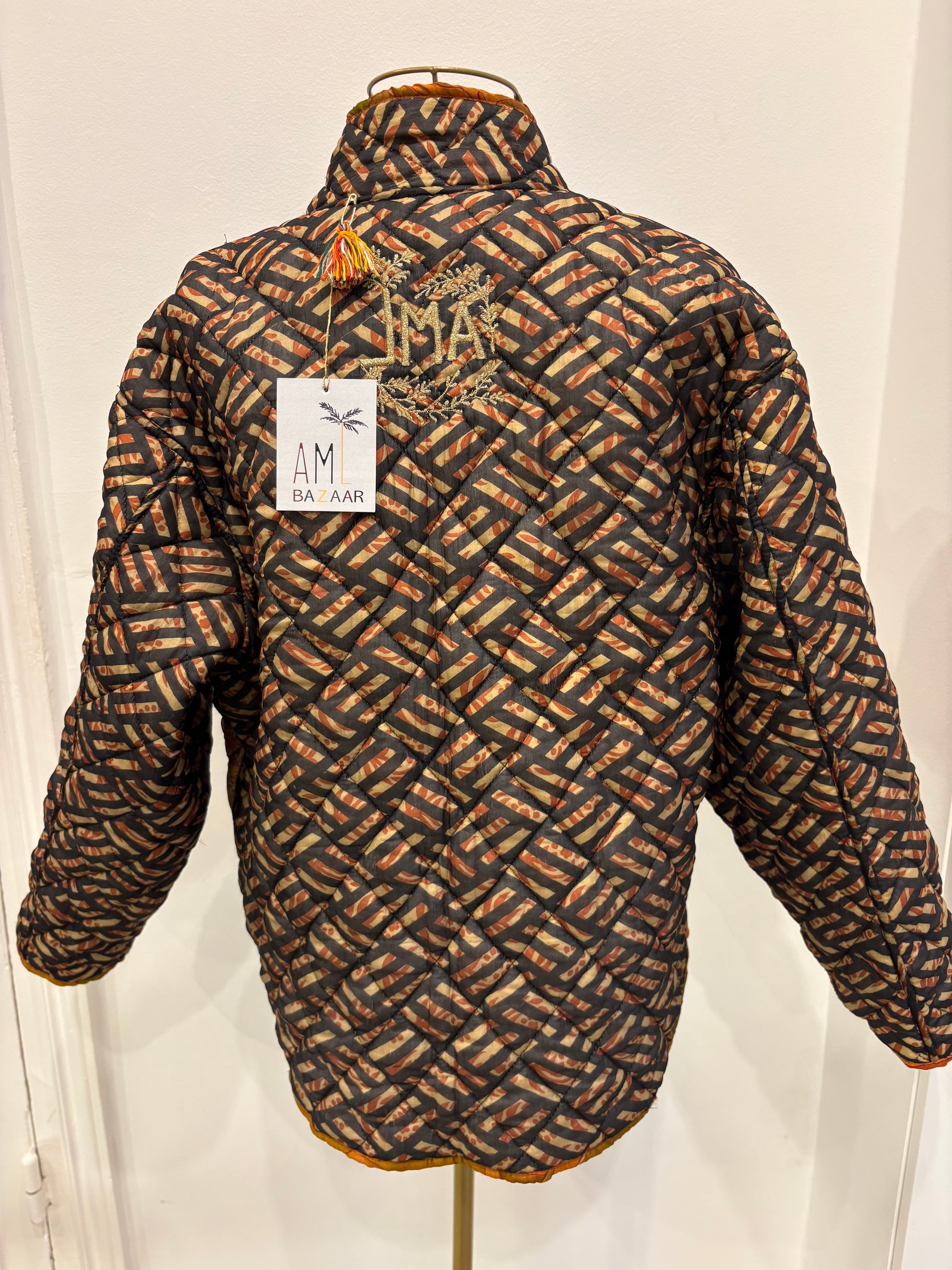 Veste matelassée et complètement réversible, confectionnée en sari de soie recyclée, dotée de deux poches plaquées.