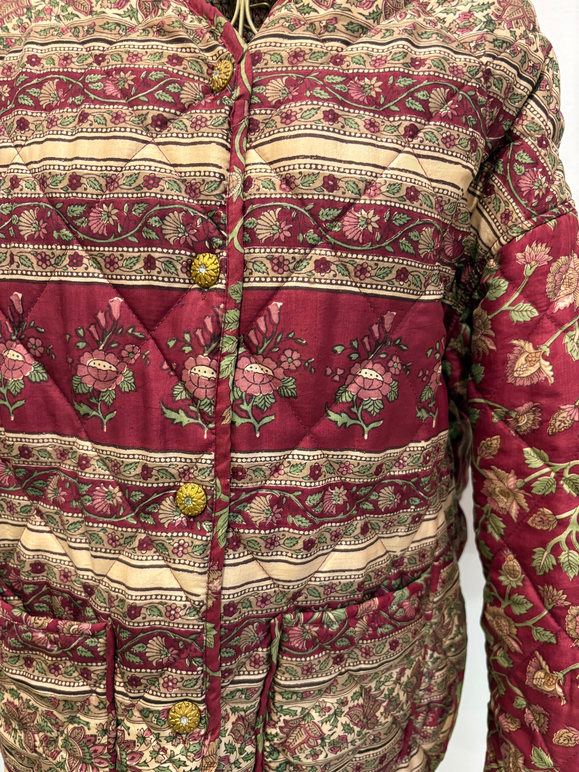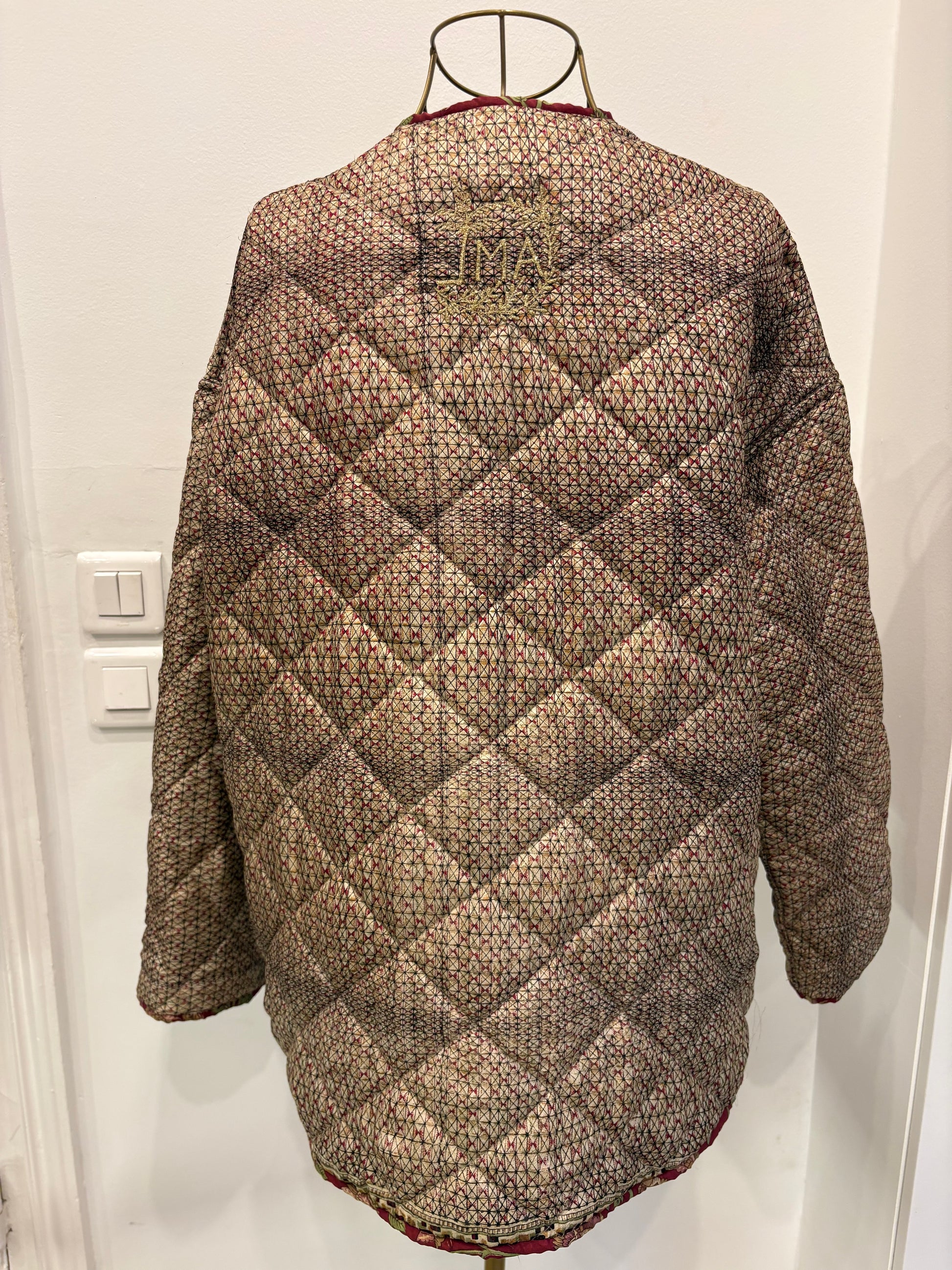 Veste matelassée et complètement réversible, confectionnée en sari de soie recyclée, dotée de deux poches plaquées.